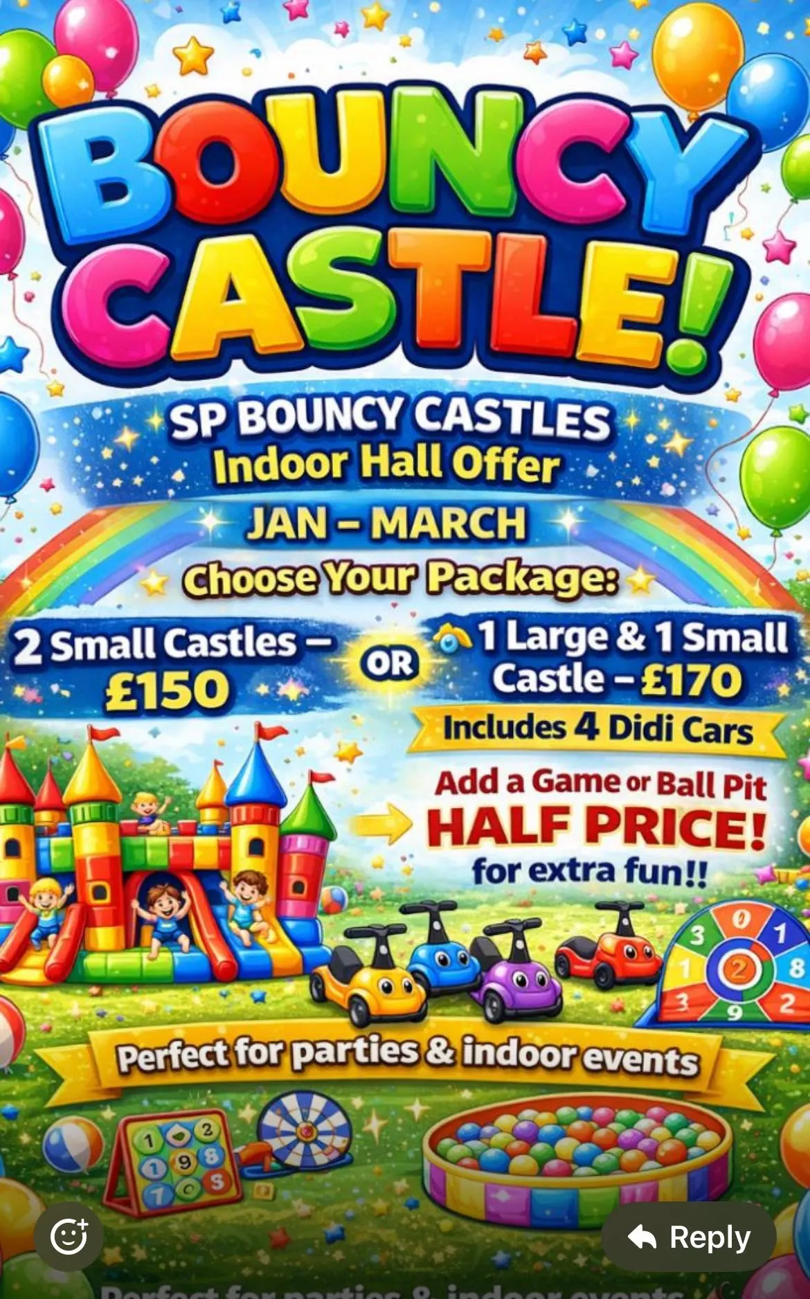 Very helpful & friendly! brought bouncy castle a day early so my daughter was in her element having it for 2 days! will definately be using SP Bouncy Castles again! 5* Service